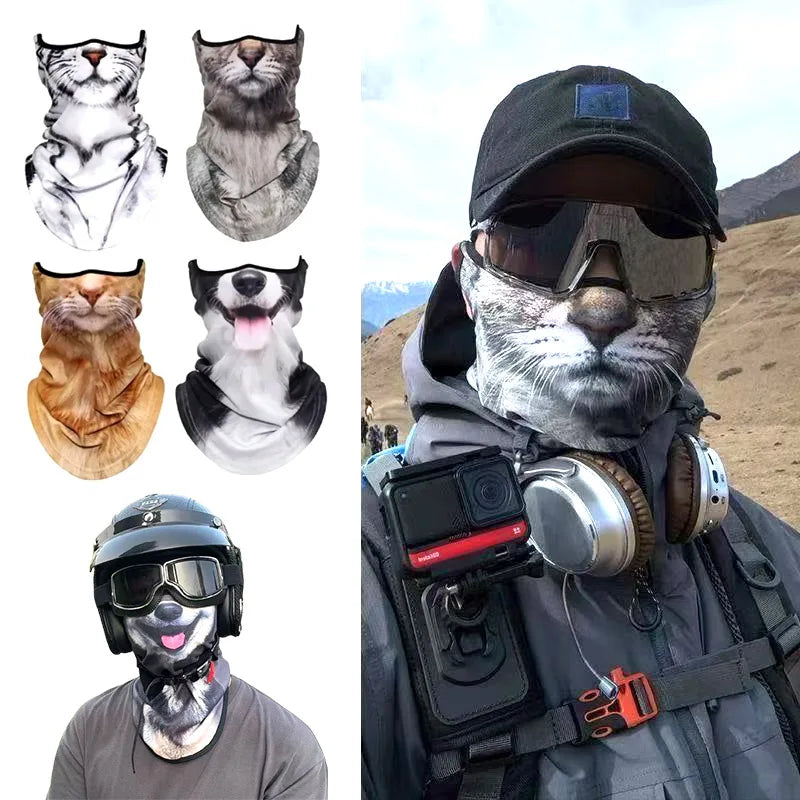 3D Ear Hanging Cycling Animal Face Mask Animal Pattern Ear Loop - Cat Design UV Sun Wind Dust Proof Balaclava for Outdoor Sports